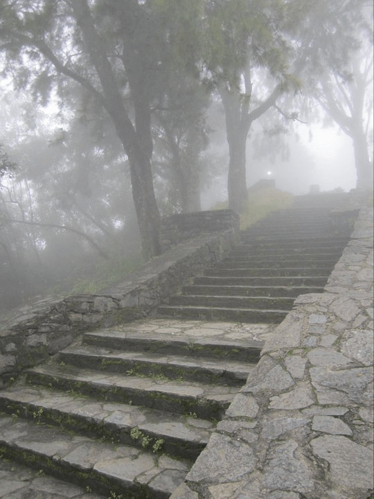 Stairs enveloped in mist as you continue the journey up once you get to the top of Cerro Avila in Caracas.