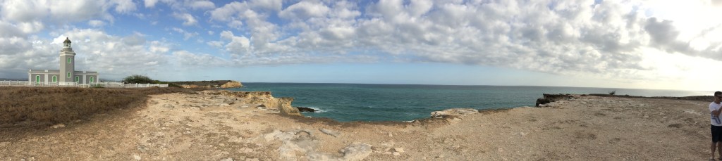 The lighthouse, cliffs, and beach in Cabo Rojo.