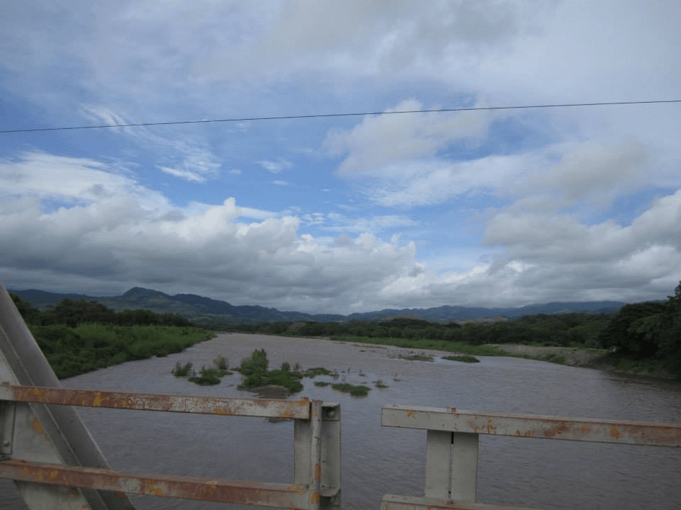 The Río Paz border between El Salvador (right) and Guatemala (left.)