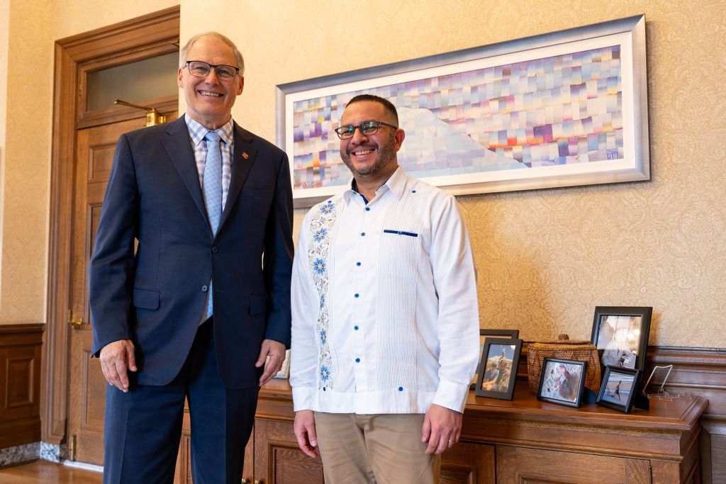 With Governor Jay Inslee on my last day as part of his cabinet, wearing one of my favorite Yucatec guayaberas.